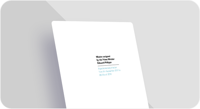 Mission assigned by the Prime Minister Édouard Philippe A parliamentary mission from 8th September 2017 to 8th March 2018 Assisted by Anne-Lise Meurier, Zineb Ghafoor, Candice Foehrenbach, Stella Biabiany-Rosier, Camille Hartmann, Judith Herzog, Marylou le Roy, Jan Krewer, Lofred Madzou and Ruben Narzul.