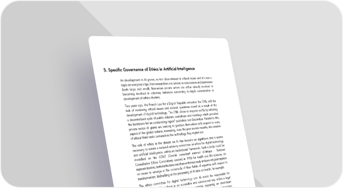 5. Specific Governance of Ethics in Artificial Intelligence As development in AI grows, so too does interest in ethical issues and it’s now a topic on everyone’s lips, from researchers and unions, to associations and businesses (both large and small). Numerous private actors are either already involved or becoming involved in voluntary initiatives concerning in-depth consideration or development of ethics charters. Two years ago, the French Law for a Digital Republic entrusted the CNIL with the task of reviewing ethical issues and societal questions raised as a result of the development of digital technology. The CNIL chose to respond swiftly by initiating a decentralized cycle of public debates, workshops and meetings which provided the backbone for an outstanding report3 published last December. Parallel to this, private sector AI giants are seeking to position themselves with respect to every aspect of the global debate, increasing, over the past several months, the creation of ethical think tanks centered on the technology they implement. The role of ethics in the debate on AI has become so significant that it seems necessary to instate a national advisory committee on ethics for digital technology and artificial intelligence, within an institutional framework. Such a body could be modelled on the CCNE (Comité consultatif national d’éthique - National Consultative Ethics Committee), created in 1983 for health and life sciences. As separate bodies, both institutions could nevertheless study and provide joint opinion on issues to emerge at the crossroads of their fields of expertise with respect to transhumanism, biohacking or the processing of AI data on health, for example. The ethics committee for digital technology and AI would be responsible for coordinating public debate in an accessible and constructed way within a legal framework. The committee would need to express reasoning on short-team perspectives such as industrial and economic issues, ensuring effective interaction with sectorial committees, whilst also being able to step outside of this mindset in order to take account of long-term perspectives. Forming such a body would not only ensure a high level of expertise, but also independence in terms of special interests. Independently developed opinions of the committee could provide clarity on technological choices made by researchers, and industrial and economic actors. We could draw inspiration from Germany in this regard, who recently established an ethics commission responsible for ruling specifically on driverless cars. The commission published its first report last August4, in which recommendations made can serve as benchmarks for resolving ethical dilemmas, and therefore as guidelines for the programming of driverless vehicles. This new committee must also be able to advise the State on its own technological choices: whether at national level (such as choices made by the State concerning the use of AI for surveillance, etc.) or at international level (France’s position on autonomous weapons). 3. How can humans keep the upper hand? Report on the ethical matters raised by AI algorithms, published 15 December 2017 4. Report available at the following address: https://www.huntonprivacyblog.com/wp- content/uploads/sites/18/2017/06/084-dobrindt-bericht-der-ethik-kommission.pdf 128