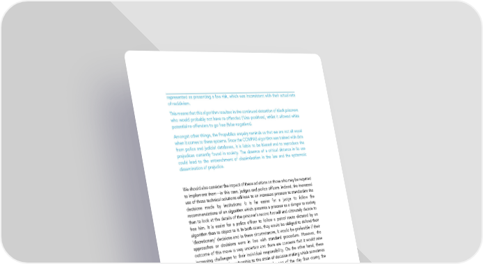 represented as presenting a low risk, which was inconsistent with their actual rate of recidivism. This means that this algorithm resulted in the continued detention of black prisoners who would probably not have re-offended (false positives), whilst it allowed white potential re-offenders to go free (false negatives). Amongst other things, the Propublica enquiry reminds us that we are not all equal when it comes to these systems. Since the COMPAS algorithm was trained with data from police and judicial databases, it is liable to be biased and to reproduce the prejudices currently found in society. The absence of a critical distance in its use could lead to the entrenchment of discrimination in the law and the systematic dissemination of prejudice. We should also consider the impact of these solutions on those who may be required to implement them—in this case, judges and police officers. Indeed, the increased use of these technical solutions will lead to an increased pressure to standardize the decisions made by institutions: it is far easier for a judge to follow the recommendations of an algorithm which presents a prisoner as a danger to society than to look at the details of the prisoner’s record himself and ultimately decide to free him. It is easier for a police officer to follow a patrol route dictated by an algorithm than to object to it. In both cases, they would be obliged to defend their ‘discretionary’ decisions and in these circumstances, it would be preferable if their approaches or decisions were in line with standard procedure. However, the outcome of this move is very uncertain and there are concerns that it would raise increasing challenges to their individual responsibility. On the other hand, these systems would not be vulnerable to the strain of decision-making which sometimes results in judges freeing fewer prisoners at the end of the day than during the morning… Another danger linked to the proliferation of systems for predictive analysis is the increased threat of mass surveillance. For predictions to be as accurate as possible and to optimize decision-making, these systems need to have access to as much information as possible, at the expense of individual privacy. More fundamentally, these systems are liable to reduce individual autonomy by encouraging judges to detain prisoners who have already served their sentences or by organizing the systematic surveillance of populations in deprived areas. Regulating the use of predictive algorithms To prevent these situations arising, citizens should first of all be informed about their rights: in these two instances, the right to an effective remedy and the right to explanations concerning the processing of data on which surveillance is based. From this point of view, we need to remind ourselves that in 1978, the French Data Protection Act laid down the principle according to which ‘no court or other decision involving legal consequences for an individual can be taken solely on the basis of the automated processing of personal data intended to define the profile of the person concerned or to assess certain aspects of his personality’, adding that ‘an individual has the right to know and to challenge this information and the logic underlying the automated processing when these results are denied him’. These 124