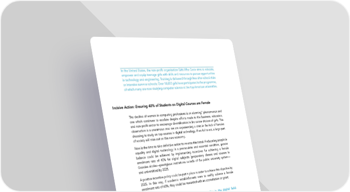 In the United States, the non-profit organization Girls Who Code aims to educate, empower and equip teenage girls with skills and resources to pursue opportunities in technology and engineering. Training is delivered through free after-school clubs or intensive summer schools. Over 10,000 girls have participated in the programme, of which many are now studying computer science at the top American universities. Incisive Action: Ensuring 40% of Students on Digital Courses are Female The decline of women in computing professions is an alarming” phenomenon and one which continues to escalate despite efforts made in the business, education, and non-profit sector to encourage diversification in the career choices of girls. This observation is a unanimous one: we are experiencing a crisis in the lack of females choosing to study on top courses in digital technology. If we fail to act, a large part of society will miss out on this new economy. Now is the time to take definitive action to reverse this trend. If educating people in equality and digital technology is a prerequisite and essential condition, gender balance could be achieved by implementing incentives for achieving a female enrolment rate of 40% for digital subjects (preparatory classes and courses in Grandes écoles—prestigious institutions outside of the public university system— and universities) by 2025. A positive incentive policy could be put in place in order to achieve this objective by 2025. In this way, if academic establishments were to swiftly achieve a female enrolment rate of 40%, they could be rewarded with an accreditation or grant. Promoting courses fully committed to gender equality in the digital field: Grande École du Numérique (GEN), in Paris The Grande École du Numérique aims to promote gender equality in the digital sector and ensure women have access to opportunities on offer within the field. Accredited courses are therefore tasked with ensuring at least 30% of their student intake are female. As an example of this, Web@cadémie launched its programme ‘Ambition Féminine’ (Feminine Ambition), with a majority female intake. The Grande École du Numérique also promotes courses that enable mothers to enroll thanks to family- friendly timetables. The development of female mentorship, such as initiatives by Social Builder, is promoted with a view to obtaining the accreditation. Source: GEN, “Favoriser la mixité dans le secteur du numérique” (Promoting gender balance in the digital sector), February 2017 The shift in the number of girls studying computer science and engineering is far from unrealistic if supported by a framework that enables the inclusion of women in digital professions and change in cultures and practices to be envisaged. In this respect, it is interesting here to reflect on examples of foreign higher education establishments that have succeeded in significantly improving the number of female 136