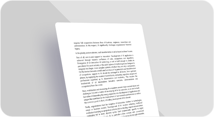 requires full cooperation between lines of business, engineers, researchers and administrators. In this respect, AI significantly challenges organizations’ historical legacy. In the priority sectors selected, such transformation must be based on three focuses. First of all, end-to-end support to innovation. Development of AI application is achieved through iterative confluence of data, occupations and algorithms. Emergence of an innovative AI technology is not in itself enough to enable its percolation for use in industry or the public sphere: AI technologies are designed to integrate into larger, more complex systems, of which they are only a component. On the border between overall transformations of organizations and transformation of occupations, support to AI should be envisaged at all levels, from upstream phases, by supplying the required material (data, computing capacities, usages and professional expertise) up to dissemination and marketing. This requires the involvement of all stakeholders (industrial concerns, administrations and occupations) from the outset. Next, mobilization and structuring of ecosystems around major sectoral issues and challenges. It is not a matter of developing AI for its own sake, as an end in itself, but rather of channeling the energy expended into development of applications and usages that contribute to the improvement of our economic performance as well as the common good. In short, of making development of AI relevant. Finally, organizations must be receptive of innovation, whether in technologies, usage or business models. Development of AI requires rethinking traditional methods of carrying out projects so as to be able to develop, experiment and (where applicable) fail in short, dynamic cycles. Such requirements—specific to digital technology in general and AI in particular—often contrast with conventional methods of project management, which are usually based on far less agile rationales, undoubtedly because goals to achieve are better defined and needs clearer. From this point of view, the model provided by the USA’s Defense Advanced Research Projects Agency (DARPA) is inspiring. Set up in 1958, and attached to the Defense Department, the institution is responsible for a whole range of technological revolutions, including the ARPANET network (ancestor of the Internet), the GUI computer and GPS. DARPA also gave initial impetus to the development of driverless vehicles. There would be no sense in trying to replicate this model. Financial capacity, methods, culture and mentalities are not the same on the other side of the Atlantic. In addition, DARPA’s success has much to do with a historical context of major integration of the military-industrial complex, which has no real equivalent in France or Europe. Some of the Agency’s methods and the spirit in which they are implemented should inspire us nonetheless (see inset). In particular as regards the President of the 19 Republic’s wish to set up a European Agency for Disruptive Innovation , enabling funding of emerging technologies and sciences, including AI. 19. President Macron expressed such a wish in his speech on Europe of 26 September 2017. 42