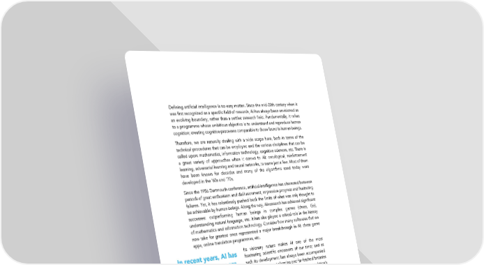 Defining artificial intelligence is no easy matter. Since the mid-20th century when it was first recognized as a specific field of research, AI has always been envisioned as an evolving boundary, rather than a settled research field. Fundamentally, it refers to a programme whose ambitious objective is to understand and reproduce human cognition; creating cognitive processes comparable to those found in human beings. Therefore, we are naturally dealing with a wide scope here, both in terms of the technical procedures that can be employed and the various disciplines that can be called upon: mathematics, information technology, cognitive sciences, etc. There is a great variety of approaches when it comes to AI: ontological, reinforcement learning, adversarial learning and neural networks, to name just a few. Most of them have been known for decades and many of the algorithms used today were developed in the ’60s and ’70s. Since the 1956 Dartmouth conference, artificial intelligence has alternated between periods of great enthusiasm and disillusionment, impressive progress and frustrating failures. Yet, it has relentlessly pushed back the limits of what was only thought to be achievable by human beings. Along the way, AI research has achieved significant successes: outperforming human beings in complex games (chess, Go), understanding natural language, etc. It has also played a critical role in the history of mathematics and information technology. Consider how many softwares that we now take for granted once represented a major breakthrough in AI: chess game apps, online translation programmes, etc. In recent years, AI has Its visionary nature makes AI one of the most fascinating scientific endeavors of our time; and as entered a new era, such its development has always been accompanied which gives rise to by the wildest, most alarming and far-fetched fantasies many hopes that have deeply colored the general population’s ideas about AI and the way researchers themselves relate to their own discipline. (Science) fiction, fantasy and mass projections have accompanied the development of artificial intelligence and sometimes influence its long-term objectives: evidence of this can be seen in the wealth of works of fiction on the subject, from 2001: A Space Odyssey to Her, Blade Runner and a significant proportion of literary science fiction. Finally, it is probably this relationship between fictional projections and scientific research which constitutes the essence of what is known as AI. Fantasies—often ethnocentric and based on underlying political ideologies—thus play a major role, albeit frequently disregarded, in the direction this discipline is evolving in. In recent years, artificial intelligence has entered a new era, which gives rise to many hopes. Most notably, this has been tied to the recent success of machine learning. Thanks to complex algorithms, increased computing power and the exponential growth of human and machine-generated data, various applications have been developed in translation, transport (driverless cars), health (cancer detection), etc. It is worth noting that progress in AI is taking place in a technological context marked by the datafication of the world which affects all sectors of our society and economy, the development robotics and the blockchain (the distributed ledger technology which enables transactions between two, or more, agents without the presence of a trusted third party or institution which most notably underlines cryptocurrencies such 4